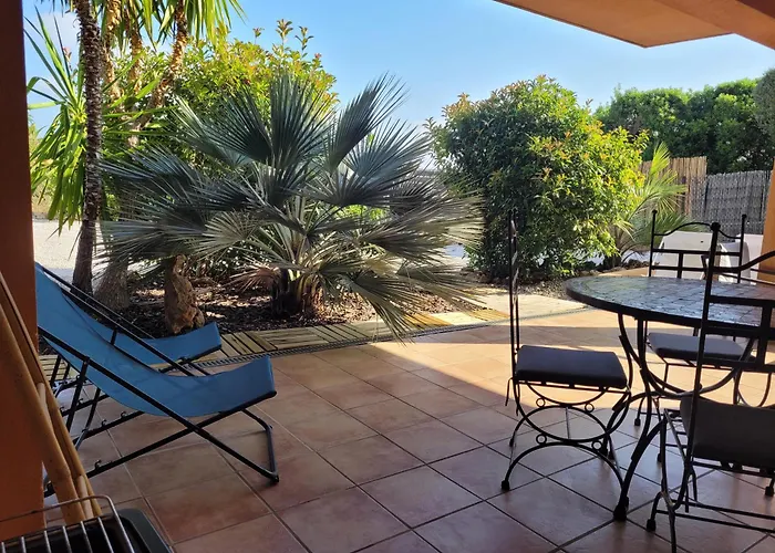 Giens-T2 Charme-7M A Pied Plage - Rez De Jardin Hyères, un apartamento de 34 m², está situado en el distrito Giens Peninsula, a 5 minutos a pie de la Iglesia de Saint-Pierre. El apartamento ofrece vistas al jardín y cuenta con una terraza.